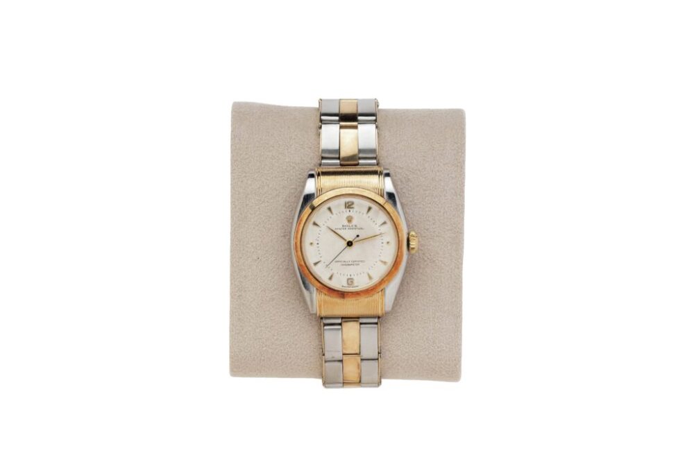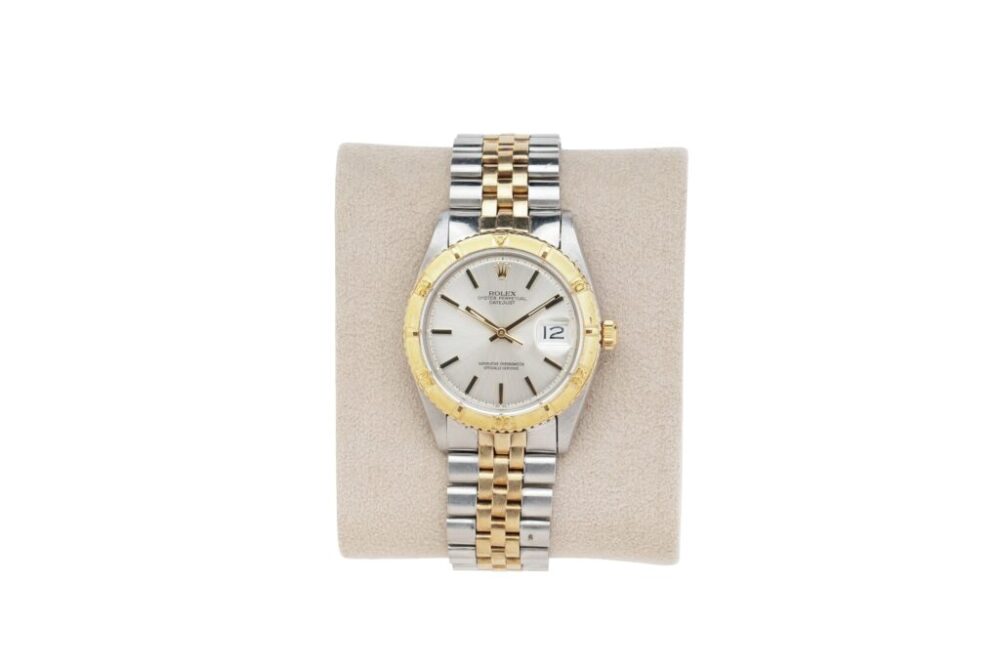 ロレックスを代表するデイトジャストの中でも、特殊な立ち位置となるサンダーバード。米国空軍のアサンダーバーズの大佐へと贈られたゴールドの両回転ベゼルの特別仕様がルーツ。針と文字盤はメーカー交換。96万8000円