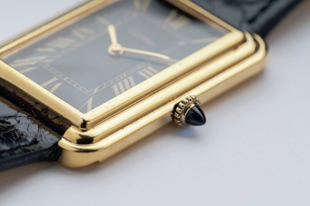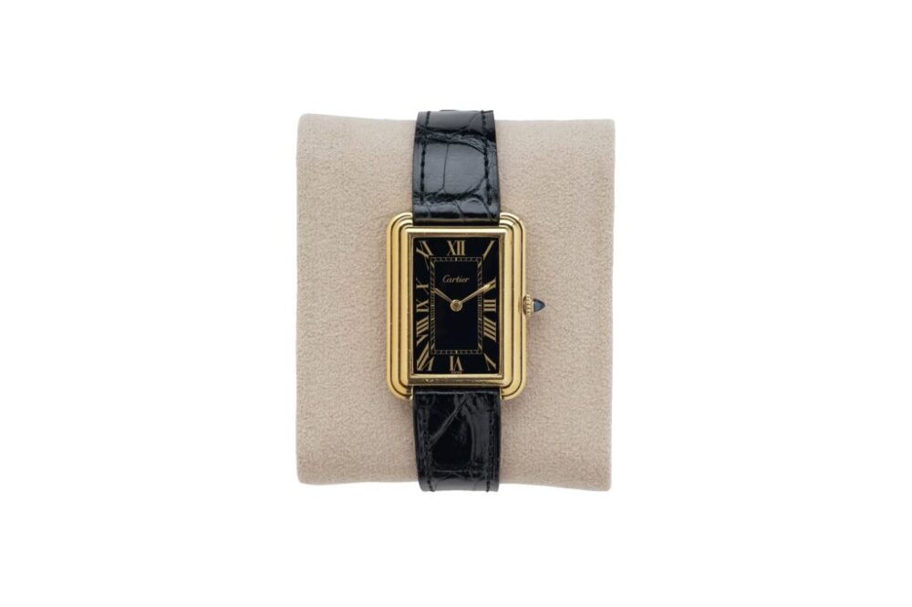 カルティエの大ヒット作であるマストドゥカルティエの前身となった希少なモデル。エレガントなステップドケースと漆黒のオニキスダイヤルが美しく調和されている。ケースはキャップゴールドとなる。手巻き。173万8000円