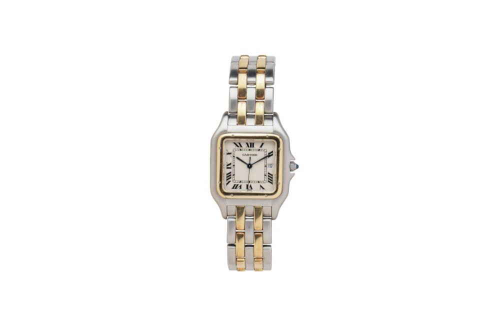 2017年に復刻されたことでも知られるカルティエの名作。通称ジャンボとも呼ばれるメンズサイズのパンテールで、あえて丸みをもたせた美しいラインが特徴。ベルにはマイヨンパンテールを装備している。76万7800円