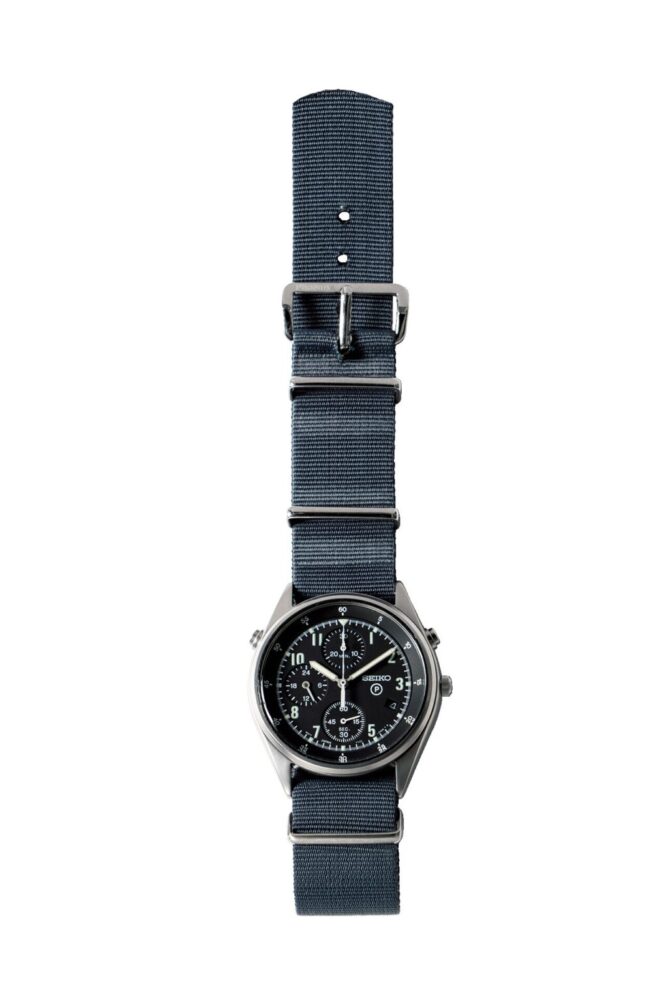 イギリス軍は1980年代半ばから1990年代まで、2種類のセイコー製クオーツクロノグラフを使用しており、これはその後期型モデルだ。初期型モデルとの違いは、24時間計とデイトが付き、1/10秒計測計を排除、ケース径も若干大きくなっている。ASK