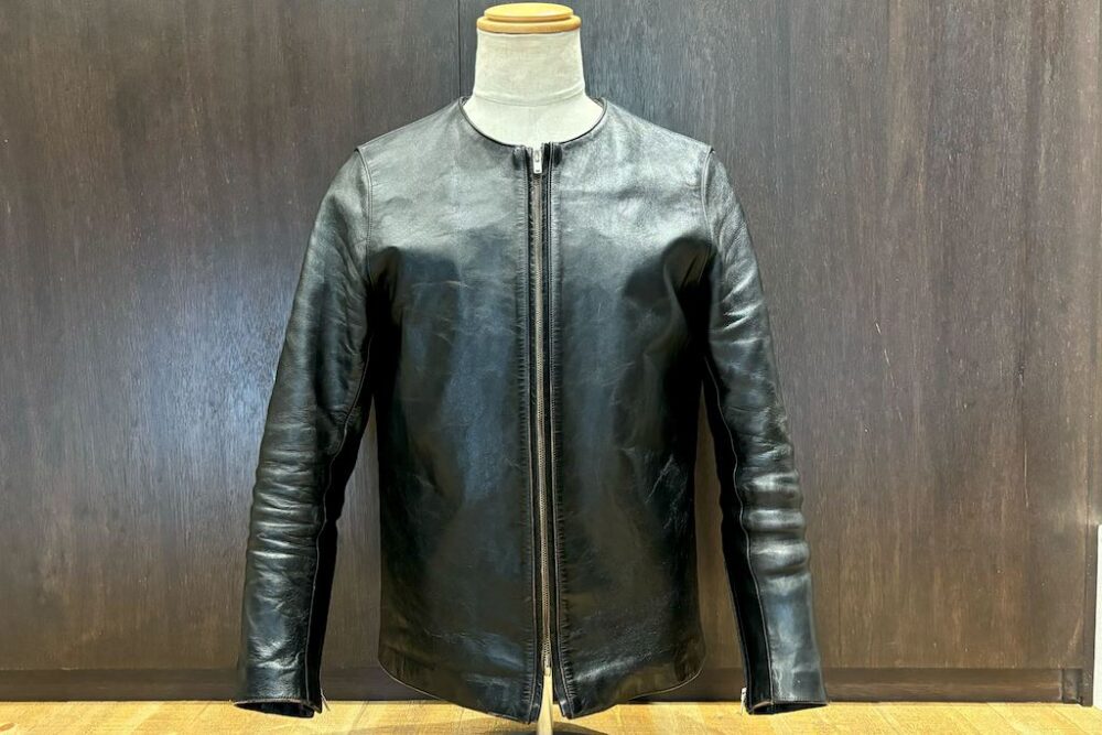 オーナー久永さんの1番のお気に入りの革ジャンはFINE CREEK &Co.のBud Heavy Weight だという。これは自身で着込んだモデル。袖に出た独特のシワや全体の雰囲気にオーラを感じる。