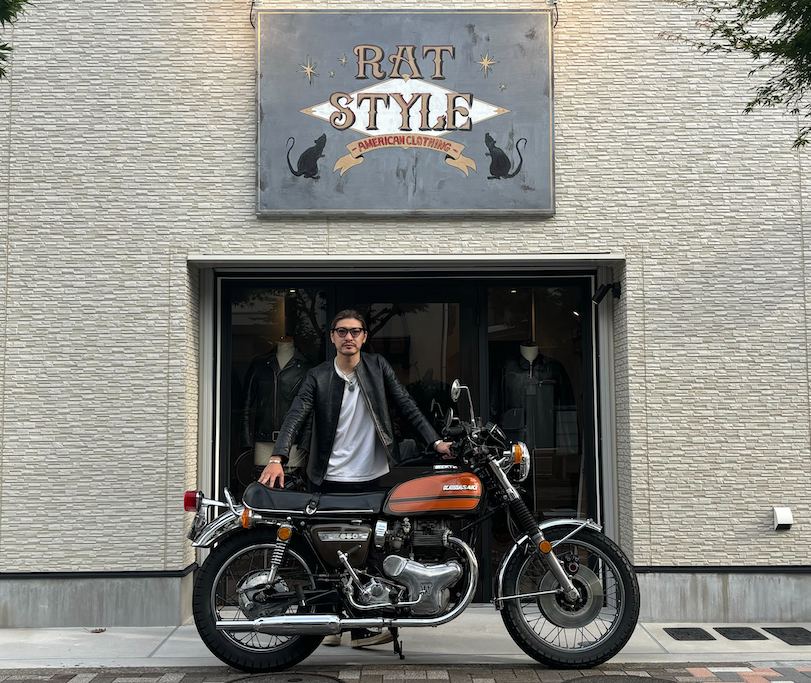 ショップの目印にもなっているオーナー久永さんの愛車であるKAWASAKI 650RS/W3。クラシカルで飽きの来ないプロダクツを愛するライフスタイルはショップの世界観と共通。