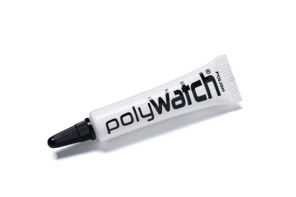 プラスチック製の風防の研磨に威力を発揮するポリウォッチ。米粒ほどのポリウォッチを付け、乾いた布で2分ほど磨くだけ。あっという間にきれいな仕上がりに。その効果に磨くのが楽しくなるかも。1320円(クロノワールド jpn@chronoworld.jp)