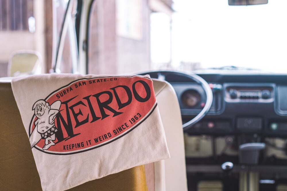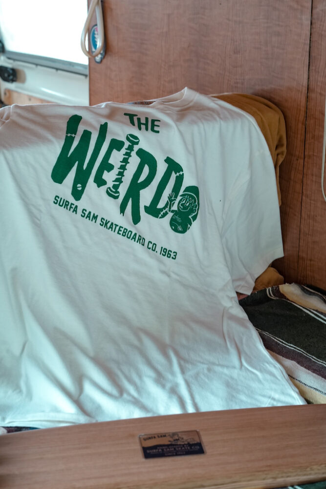 南カリフォルニアに古くから存在するサブカルチャーをアートワークに落とし込んだデザインで独自の世界観を作っているWEIRDO。その世界観に惚れ込んだSURFA SAMが、その思いをコラボレーションというカタチで具現化した。
