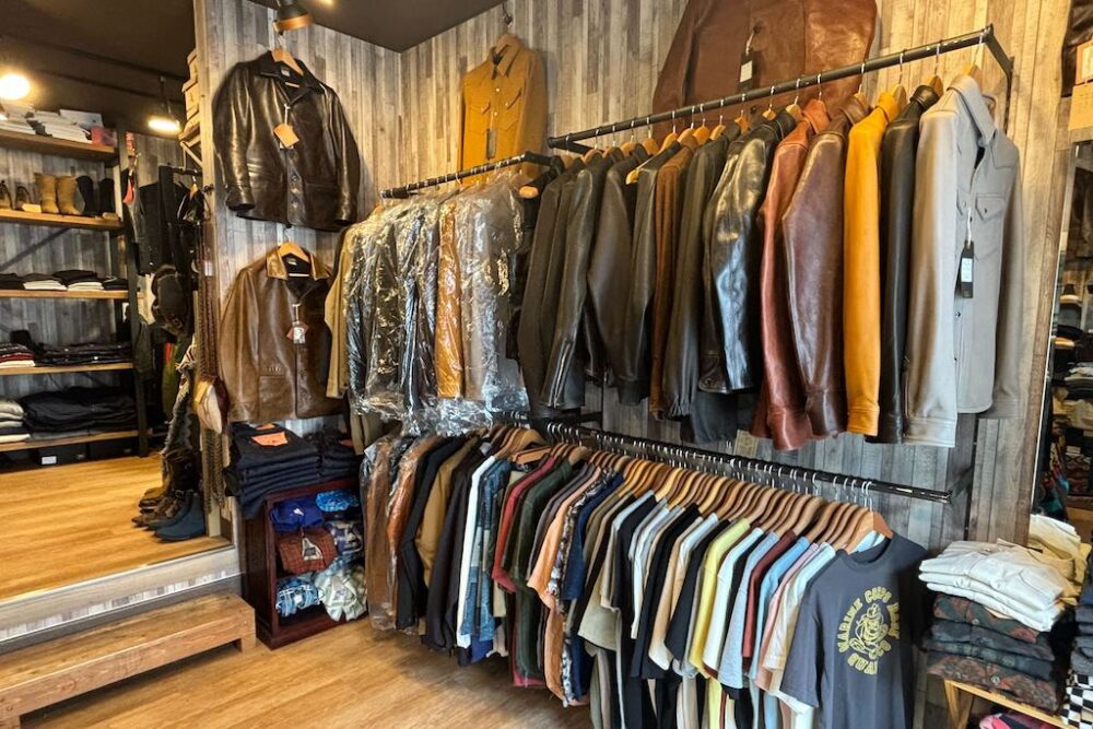 オーナー自身も普段のコーディネイトに欠かせないというレザーアイテムやデニムをメインにセレクトするだけでなく、ワークやミリタリーといった流行に左右されることのないクオリティの高いスタンダードなアイテムがずらりとそろう。