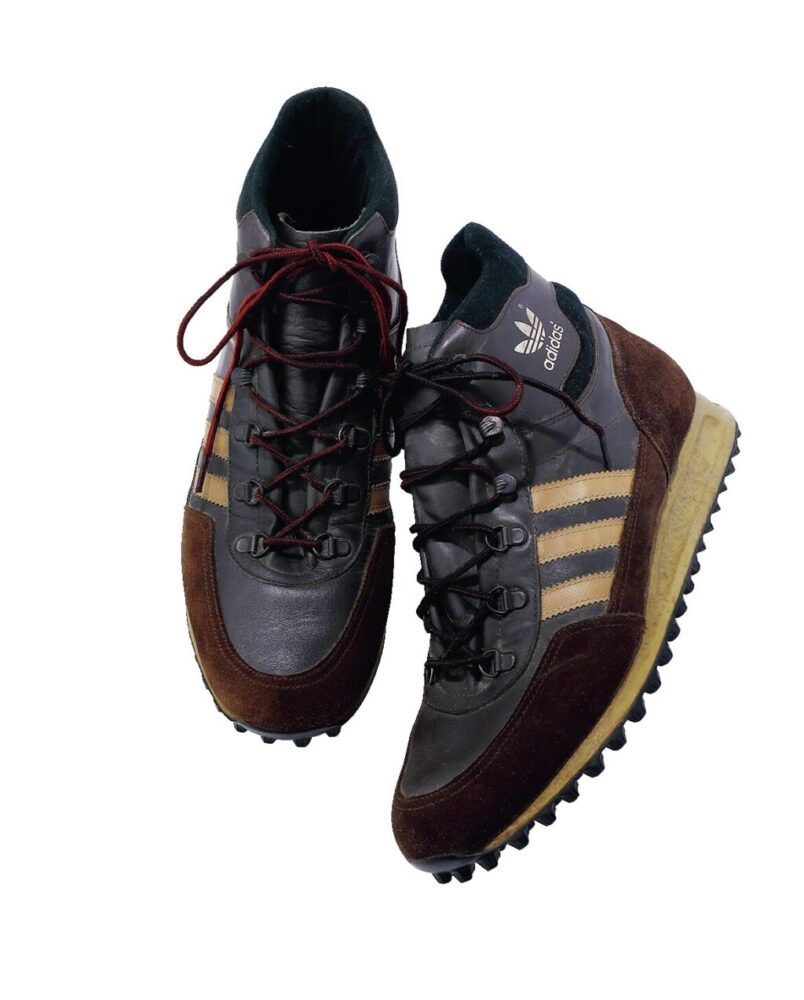 ’80sの西ドイツ製。スニーカーのミッドソールにボブソールを思わせるグリップ性の高いアウトソールを合わせたモデルで、ブーツのようなDカンを採用。ダークブラウンレザー。サイズ 11。3万2780円(コモン TEL04-7166-5433)