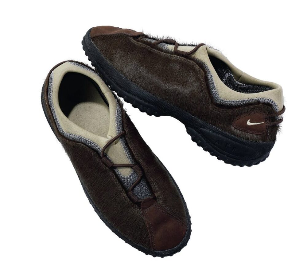 三角ACGロゴが入った2000年製モデル。踵が折れるので小さくして収納でき、携帯に便利。箱付きのデッドストック。サイズ 10。2万7280円(カメレオン ウェア ハウス TEL03-3478-4778)