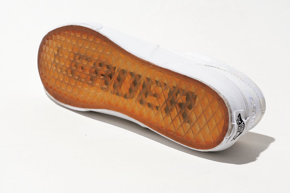 フラっと気軽に街乗り用の一足は不滅の定番スリッポン。気楽さに加えて、スプロケやチェーンにシューレースが絡まる心配がなく、薄いアッパー素材によるダイレクトな操作感も実はピスト向きなのだとか。Upper Material/Canvas Sole/Rubber Sole
