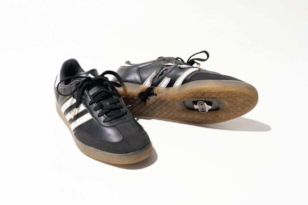 ロングライドはギアとしての性能が高い方が乗りやすいし、疲労にも影響するから、ヴィンディング付きのヴェロ・サンバが最強。ソールにヴィンディングがあっても、歩いている時は見えないからスタイル的にも問題なし。バンズの二足は自転車用ではないですが、アッパーの素材が薄く操作感をダイレクトに感じられるからピストに向いていて、普段通りのファッションを楽しめる。