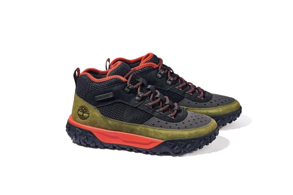 サステナブルを意識し、サトウキビ由来のバイオベース素材やリサイクルプラスチックなどを多用したブーツスニーカー。防水性や耐久性などのテクノロジーはもちろん、オリーブやオレンジを効果的に配した美麗なカラーリングも魅力。2万900円(ティンバーランド/VFジャパン TEL0120-953-844)
