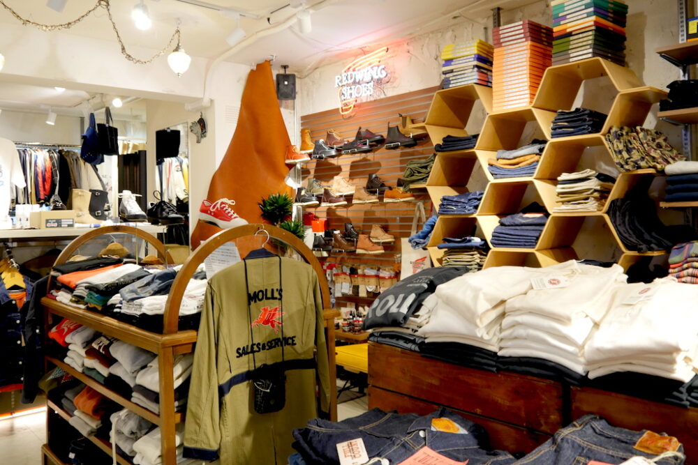 ジーンズとの相性はいうまでもないレッドウィングのブーツも豊富にセレクト。流行に左右されること無く世代を越えて永く愛せるプロダクツを提案してくれる。