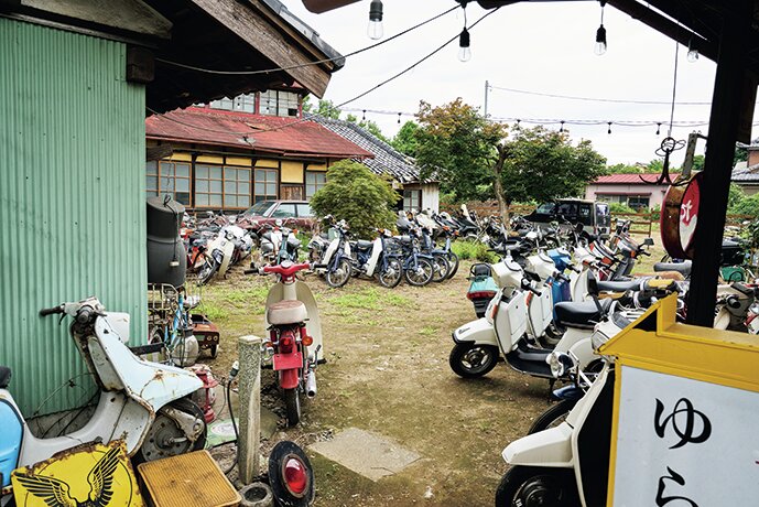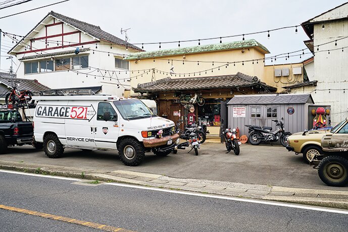 その道は今も続く。今、若尾さんは太田市で『ガレージ521』を営んでいるからだ。ダートラ仕様、チョッパースタイルなど、いじり倒したセンス溢れるカスタムカブを数々リリース。今やココは日本でもっとも有名なカブカスタムのショップのひとつだ。もっとも今に至る経緯を聞くと、若尾さんはなぜか映画監督の名をあげる。