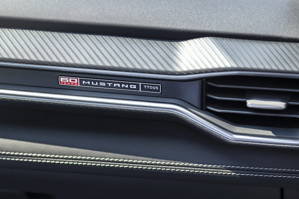といってもこれが拝めるのは60周年記念モデルのなかでもファストバックボディ、さらに10速ATモデルのみ(通常の60周年記念モデルにはコンバーチブルやマニュアル搭載車も存在)に設定されるだけ。しかも手にすることができるのは、8月16日~19日にフォードのウエブサイトから登録して、8月21日までに購入意思をメール送信してオーダーをしなければ手に入らないというかなり険しき門になっている。つまりこの記事を書いているときにすでに受注は終了している(涙)。
