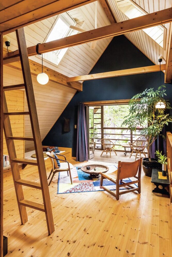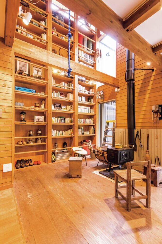 「暮らしを楽しむための装置」と謳っている通り、ワンダーデバイスはあくまで生活を包み込む箱。だから中でどんな生活をするか、どんな趣味を楽しむかはユーザー次第。吹き抜けの壁面を天井まで貫くハシゴde本棚もオプションで付けることができる。「住みながら自分色に染めていくのが最高に楽しい!」それがワンダーデバイス最大の魅力でもあるのだ。