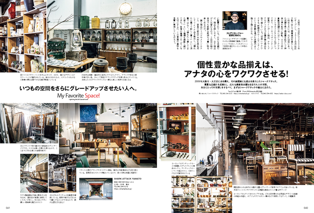 ヨーロッパのヴィンテージ家具やインポート商品、アウトドアのグッズなど、こだわりの空間を演出するアイテムを探すべく、400坪の倉庫型店舗「シャークアタック」を取材。「世界一ワクワクする、新概念のホームセンター」という世界観を掲げた店舗内は、お宝探しのようでいつまでも探していられる。