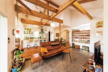 中央に柱のない広い木造ガレージ! 自宅奥のスペースに設置した念願のアメリカンガレージ。