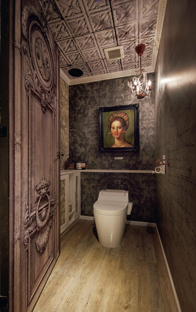 スタッフが手がけたトイレの内装。すべて壁紙を張り替えただけでこの雰囲気!