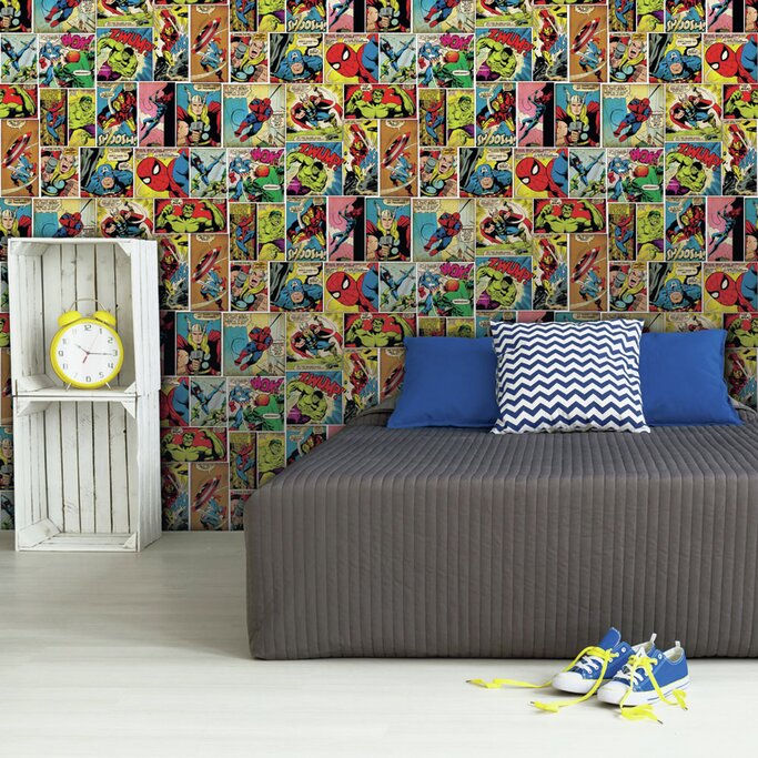 マーベルのコミックをモチーフにしたファン必見の壁紙。マーベル好きはもちろん、子ども部屋にもおすすめ。コミックのセルフ付きで英語の勉強にもなるかも。1ロール/9350円(輸入品のため為替の変動により価格改定があります)。