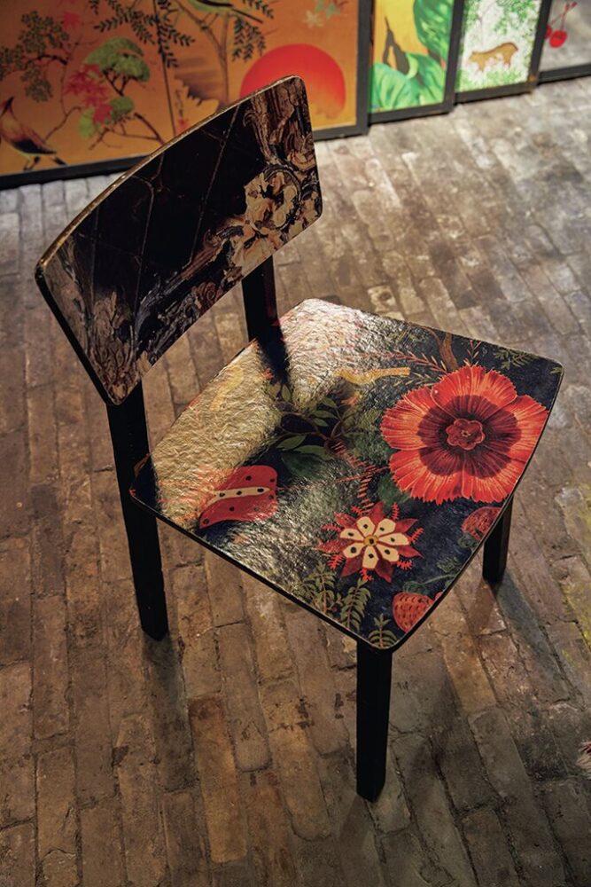 壁紙は壁に使うだけでなく、椅子やテーブルの天板などに使うのもアリ! そのほかにもスリッパやフォトフレーム、のし袋といったリメイク術もWALPA STORE TOKYOでは時々行っている。壁紙と合わせて雑貨や家具に使ってみると、より部屋の統一感がでること間違いなし。ぜひチャレンジしてみて。
