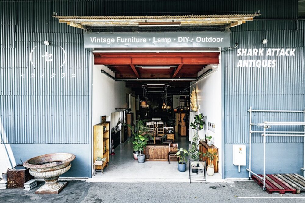 大阪市・大正区で2009年にオープンし、2011年に渋谷区千駄ヶ谷にて関東進出を果たしたシャークアタック。一昨年5月には、元々羽田にあった店舗を売り場面積を拡大して神奈川県大和市に移転。400坪の倉庫型店舗の中にはシャークアタックとセカイクラスの2社が入っており、ヨーロッパヴィンテージ家具やインポート商品、アウトドアのグッズまで多種多様な商品を取り揃えている。