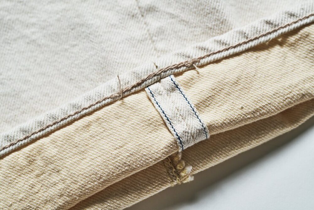14ozセルビッジ生地を採用。しっかりした厚みは残しながらも、生成りのためにスラブ感やザラ感のない滑らかな風合いになっている。