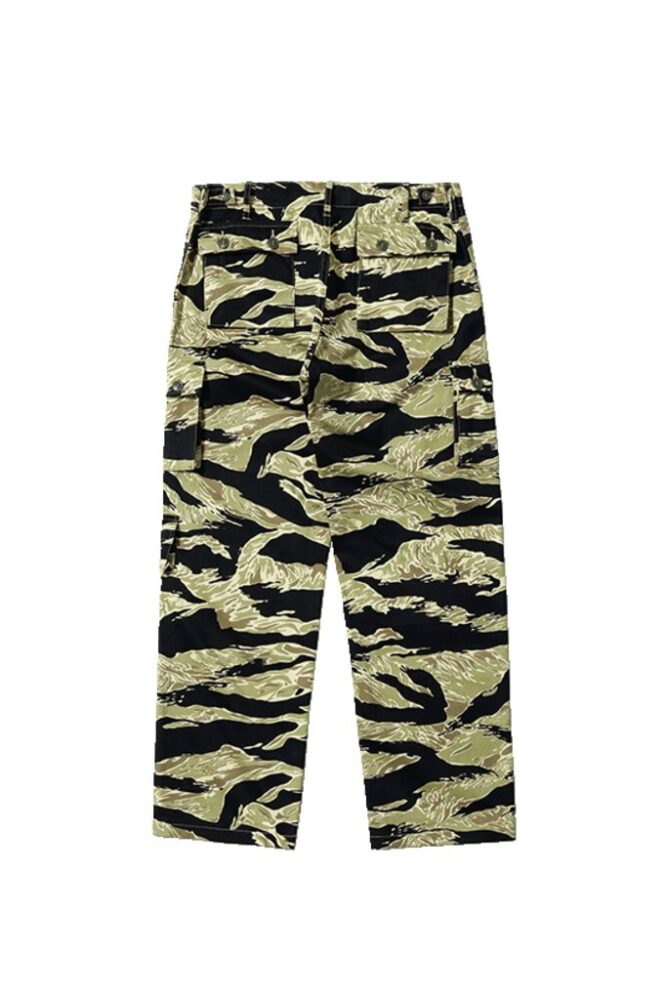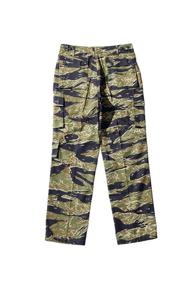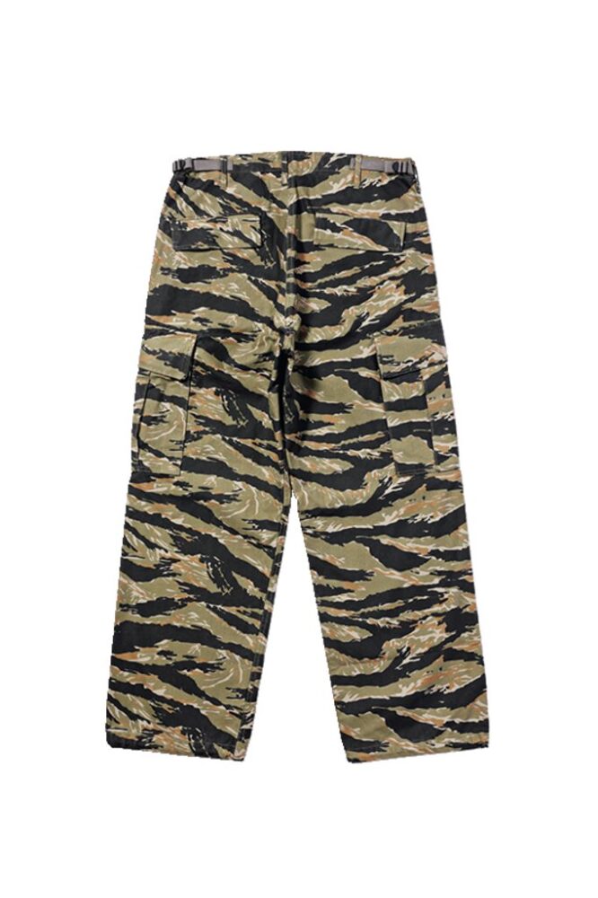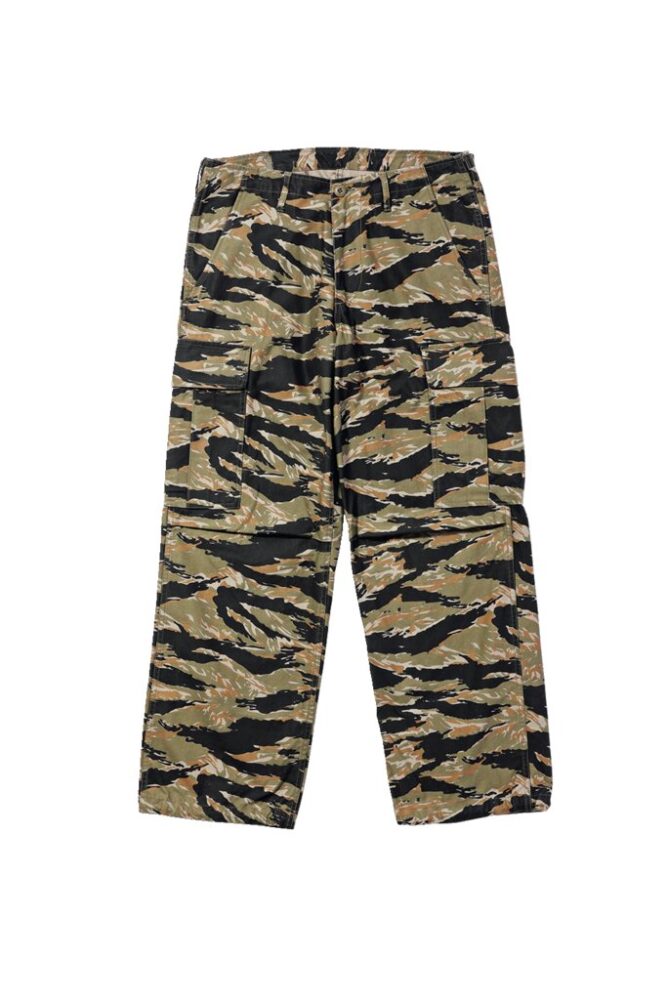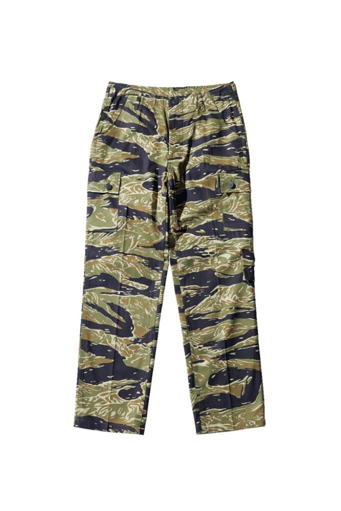 高度なプリント技術と生産性から、米軍の迷彩服を日本で生産していた1960年代のタイガーストライプをベースとした秋冬の新作。サイドとバックに配されたボタン付きのフラップポケットなど、オリジナルのディテールを踏襲している。10月中旬頃入荷予定(東洋エンタープライズ TEL03-3632-2321)