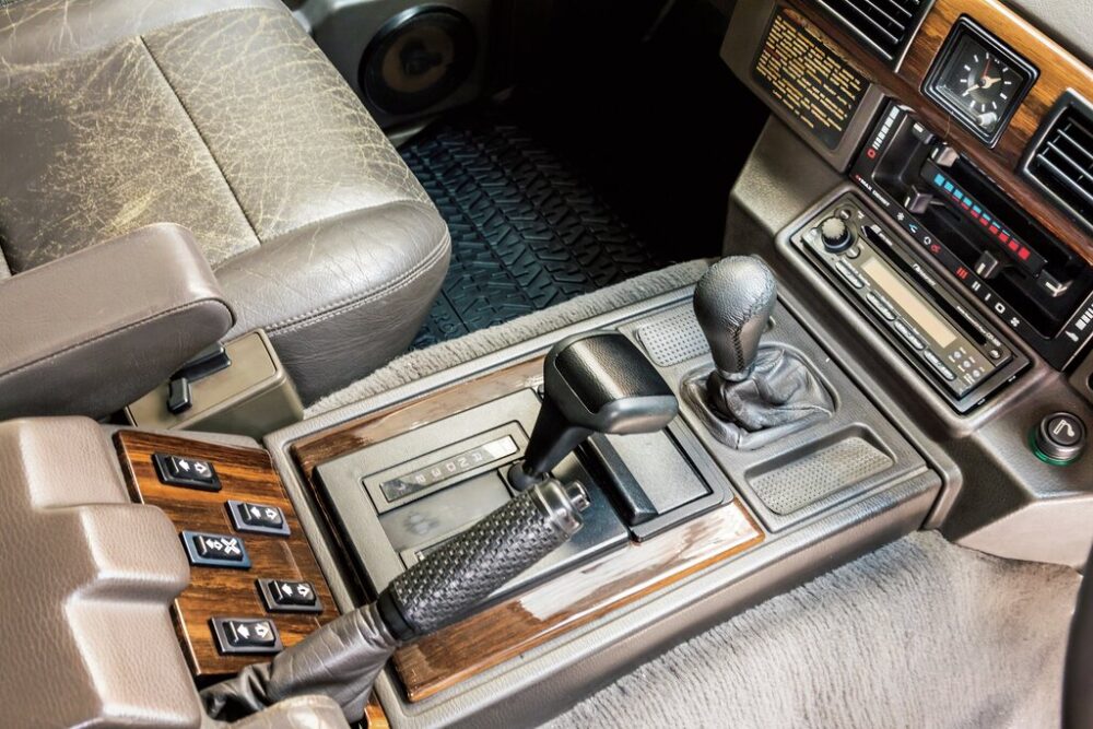 トランスミッションは4速。ATセレクターレバーの前方にトランスファーレバーが備わる。パワーウインドースイッチもセンターコンソールに集約されたデザインになる。