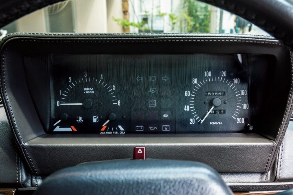 時代感を感じるインパネのデザイン。メーターは200km/hスケールのスピードと6000rpmまでのタコメーターとなる。