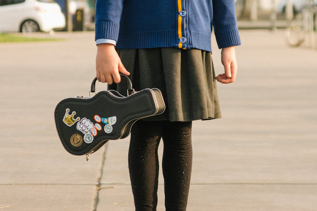 未来のロックスターに持っていただきたいギターケース型ランチボックス。自分でカスタムできるステッカーも付属するというありがたさ。大きさはバイオリンケースよりも小さいけれど、ロックンロールな姿勢はアピールできる。3400円 サイズ:155 x 280 x 81mm、重量:0.3Kg