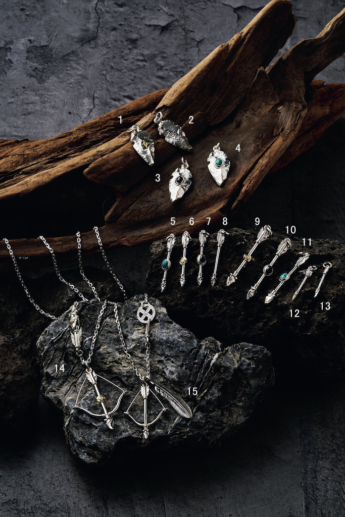 ネイティブアメリカンの伝統技法をベースにしながら自由な発想でオリジナルモチーフも数多く手がけるファーストアローズを代表するボウ&アロウ。弓矢が真っ直ぐに的を射抜くように、身につける人の行先を示し幸運へと導かれる、という意味が込められている。