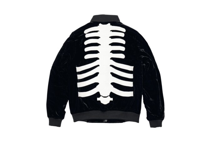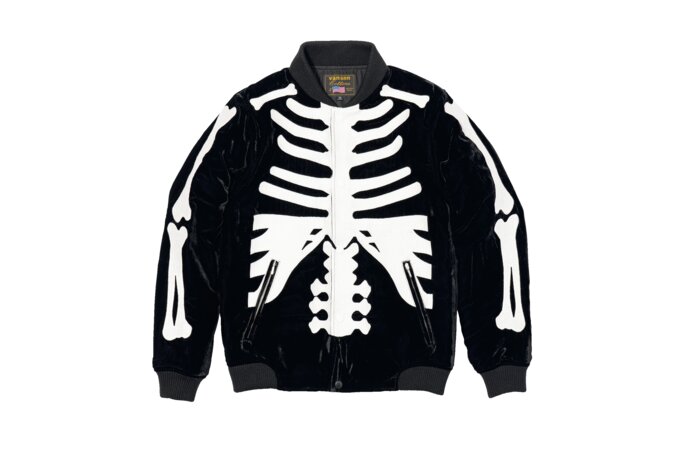 ハードアメカジ世代であればお馴染みであるモチーフのスカル&ボーン。密に打ち込まれた刺繍を別珍素材のボディに落とし込んでおり、存在感のあるデザインは50周年目を迎えた現在も健在。これからの季節に最適な一着だ。