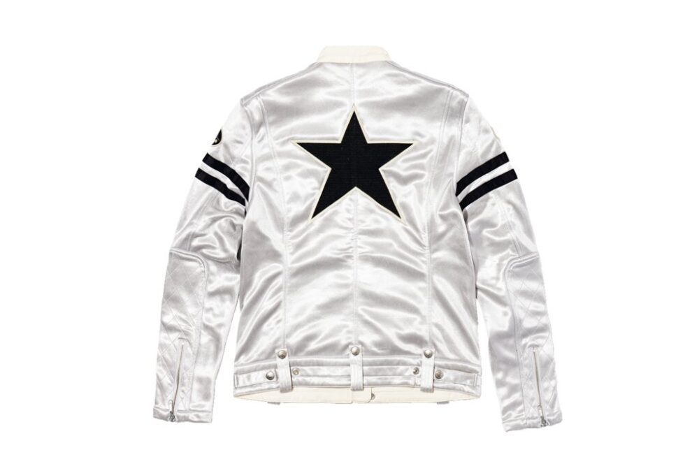 表側はサテン、裏側はフリースとなったボンディング加工の生地を使用した、シングルタイプのライダースジャケット。全5色展開されており、背面にはそれぞれカラーリングに合わせたデザインを刺繍で表現している。