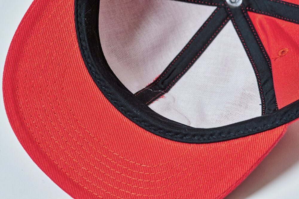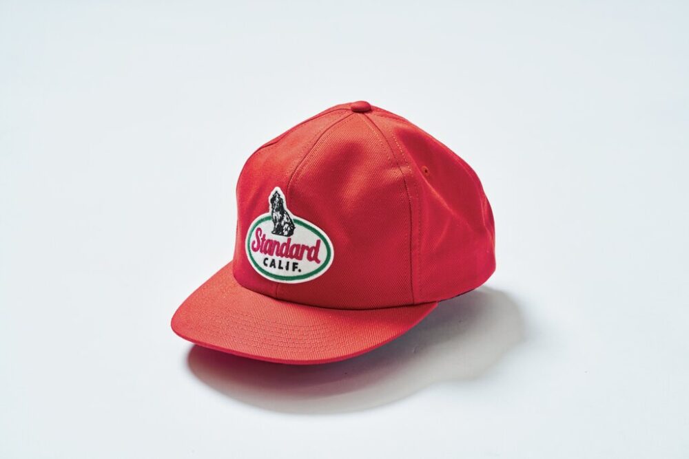 STANDARD CALIFORNIAのオリジナルのトラッカーキャップ。元ネタのヴィンテージを踏襲しながら被りやすいようにアレンジした短めのツバと角張ったシルエットが特徴だ。自分はレッドをチョイスしたが、他にブラック、ブルーの3色展開で各8800円(STANDARD CALIFORNIA TEL03-3770-5733 https://www.standardcalifornia.com)