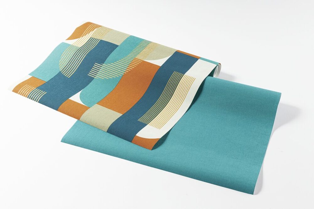 ドイツの老舗メーカー、ラッシュの壁紙。ミッドセンチュリーっぽい幾何学模様と無地を3mずつ購入(価格は各924円/m)