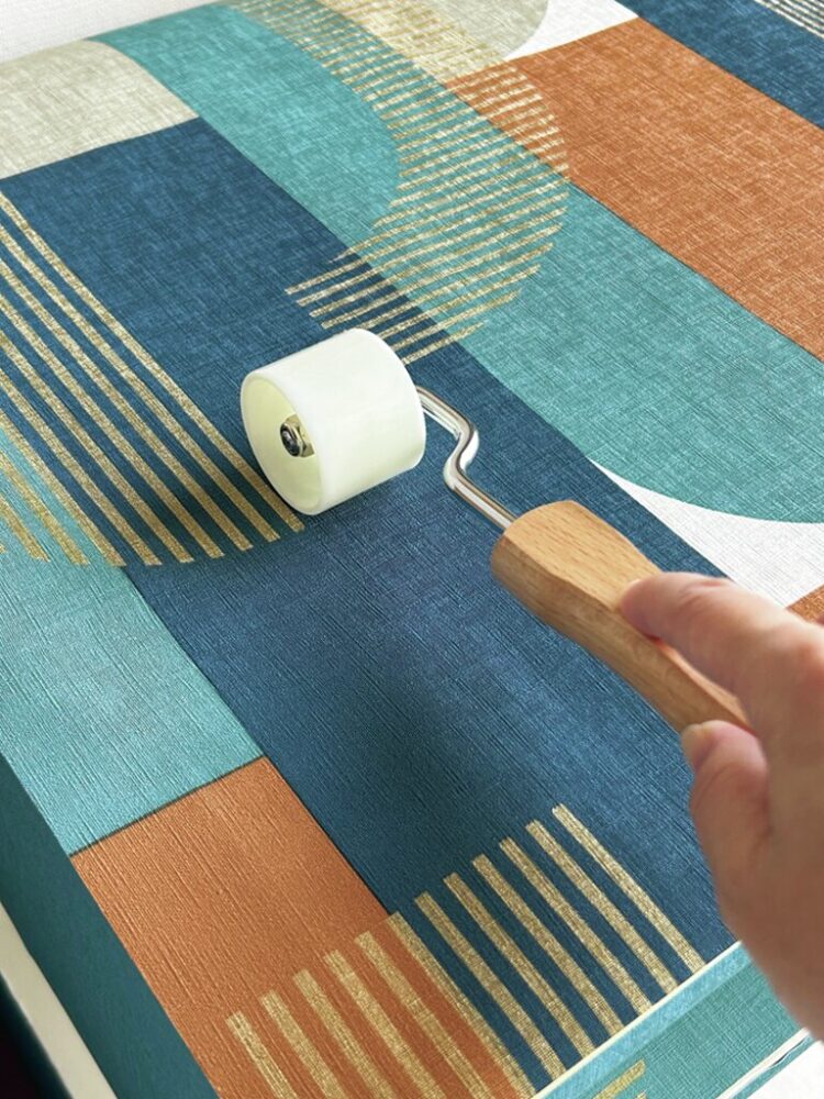 紙をしっかり貼り付けるために、隅々までローラーを転がして接着するのがポイント。接着できていない部分は時間が経つとふわりと浮いてしまう。