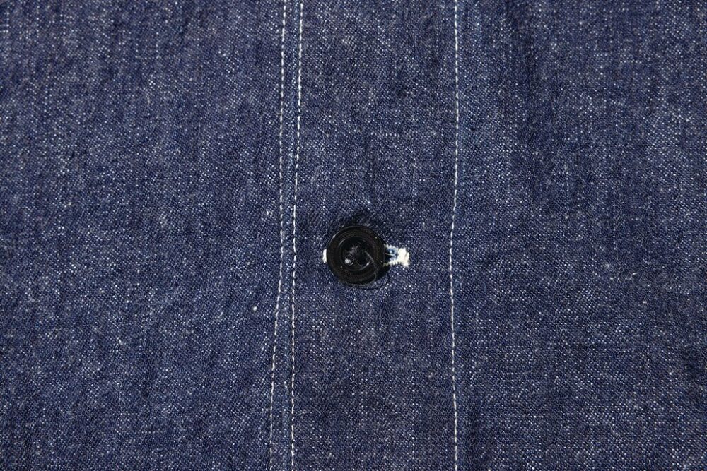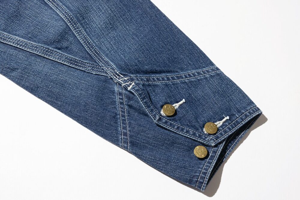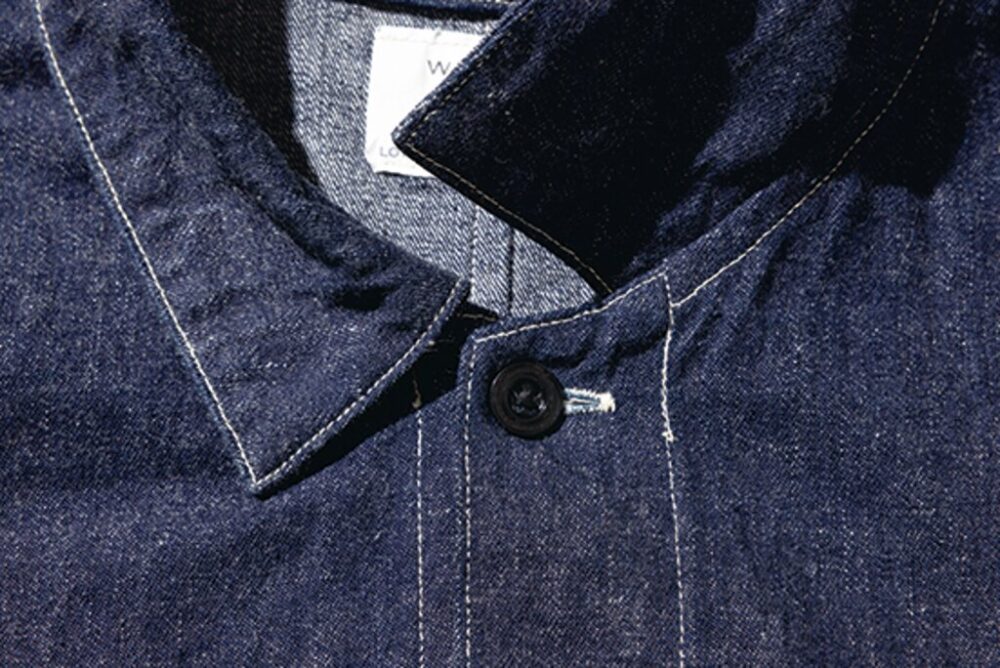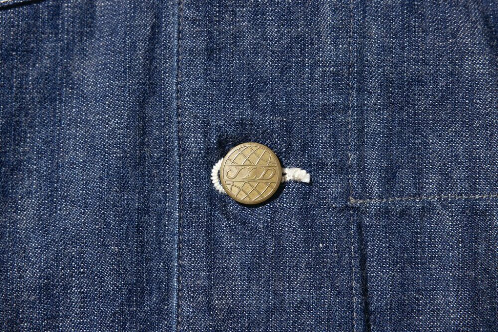 1940年代、第二次世界大戦期の物資統制が強いられていた時代に作られていたデニムカバーオールをモチーフに製作。10オンスの比較的薄手のデニム生地が使われており、フロントボタンは4箇所のみ。当時、汎用ボタンとして流通していた月桂樹ボタンが使用されている。4万1800円(The REAL McCoy’s TOKYO TEL03-6427-4300 https://therealmccoys.jp)