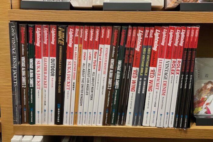 ここで数々のヴィンテージウエアを1冊にまとめたLightning Archivesのシリーズも特別に販売される。普段はウエブサイトのみで購入できるアイテムなだけに、実物を手にとって中身を吟味して選べるのがうれしい。