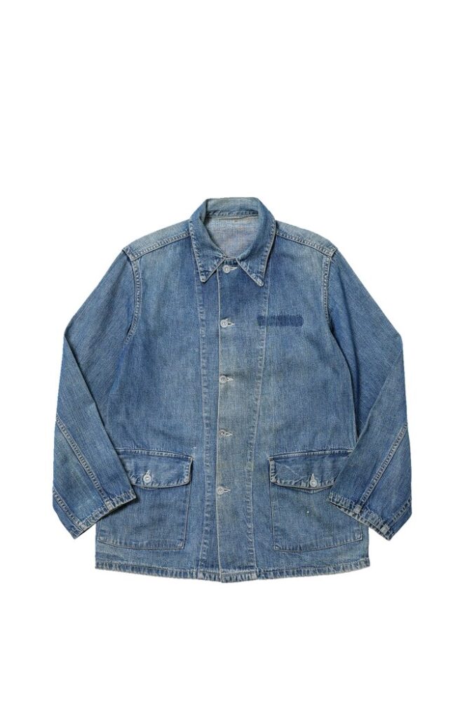 第二次世界大戦における物資統制により糸や金属パーツの使用を制限され、各ブランドの競争も沈静化していった時代であり、デザインは簡素化していった。写真はUSアーミーの1941年製でデニムのカバーオールが軍の作業用ジャケットとしても採用された。この後、ミリタリーカバーオールの素材はデニムからコットンヘリンボーンへと移行していく。