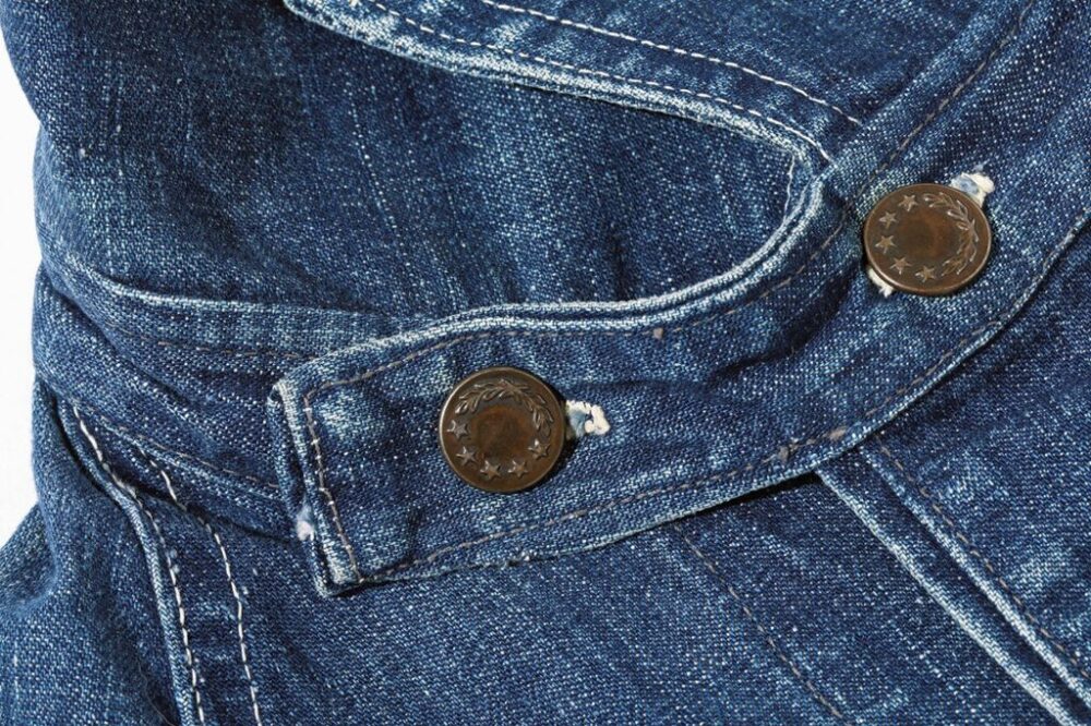 1920年代以降になると、ボタンのボディに2本足でリングが付くデザインが主流になって強度が増した。といってもその後は金属製の打ち込みボタンが主流になり、チェンジボタン仕様は戦前のカバーオールのなかでもかなり旧い年代のモノだけの特徴になった。