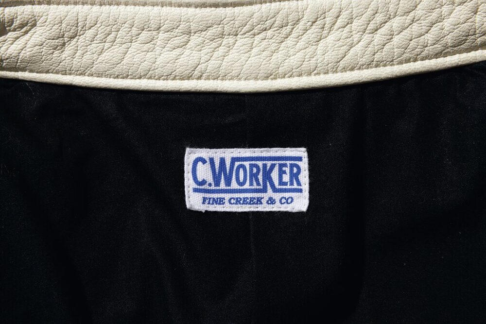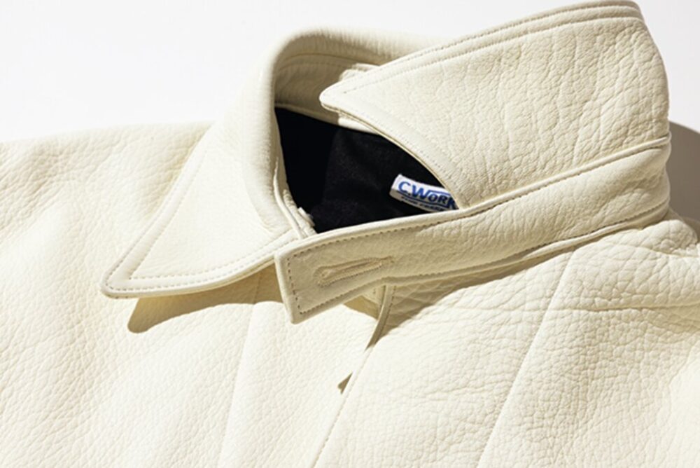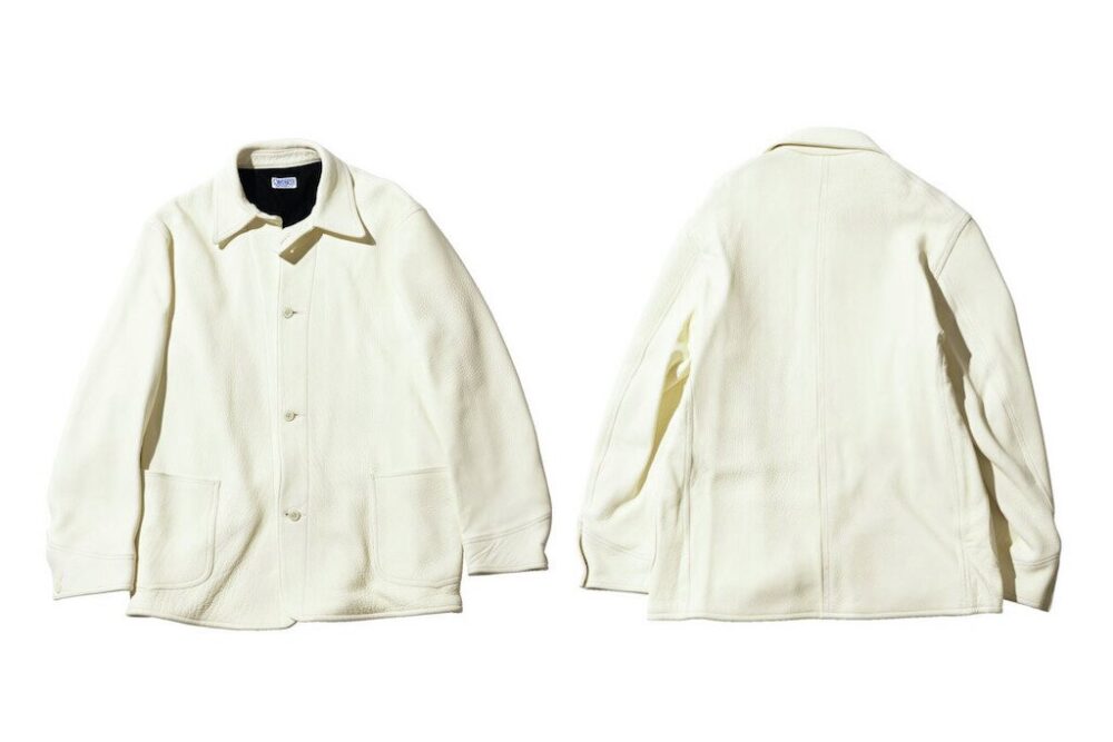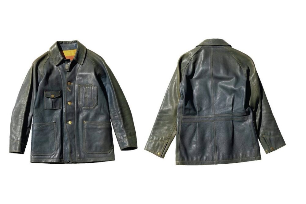 ファインクリークレザーズのワークラインであるシーワークスネームのこのジャケットは、大戦期のカバーオールをベースに鹿革で再構築。レザーはフルベジタブルタンニンの鹿革を芯通しで仕上げた1.6㎜厚以上の革を使用。鹿革特有の美しいエイジングが楽しみな至高の1着。20万9990円(FINE CREEK LEATHERS TEL050-3390-2470 https://www.finecreek.jp)