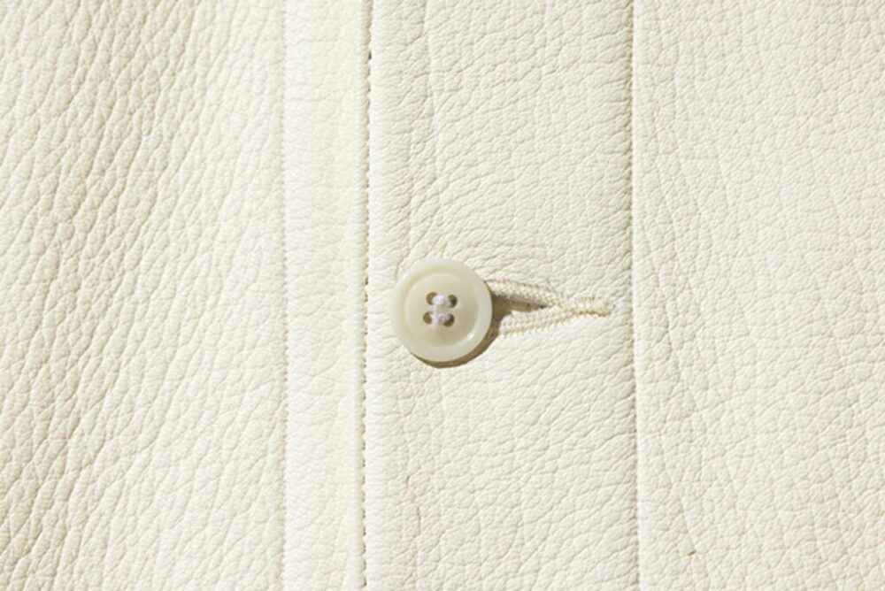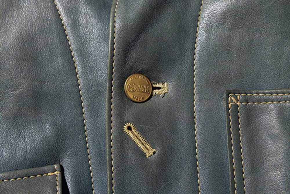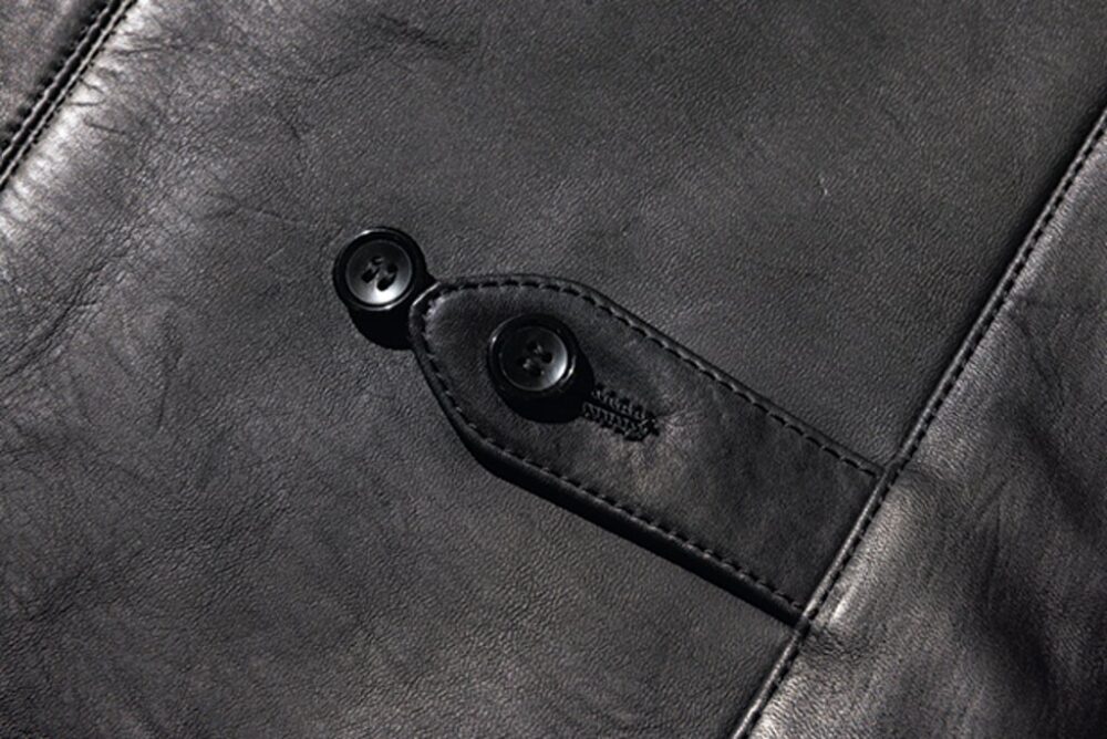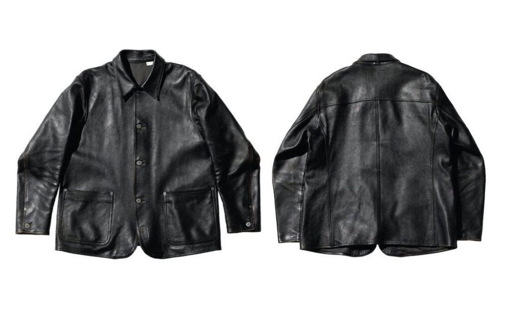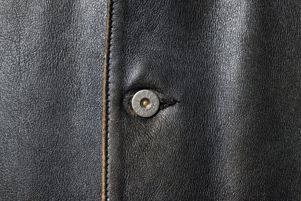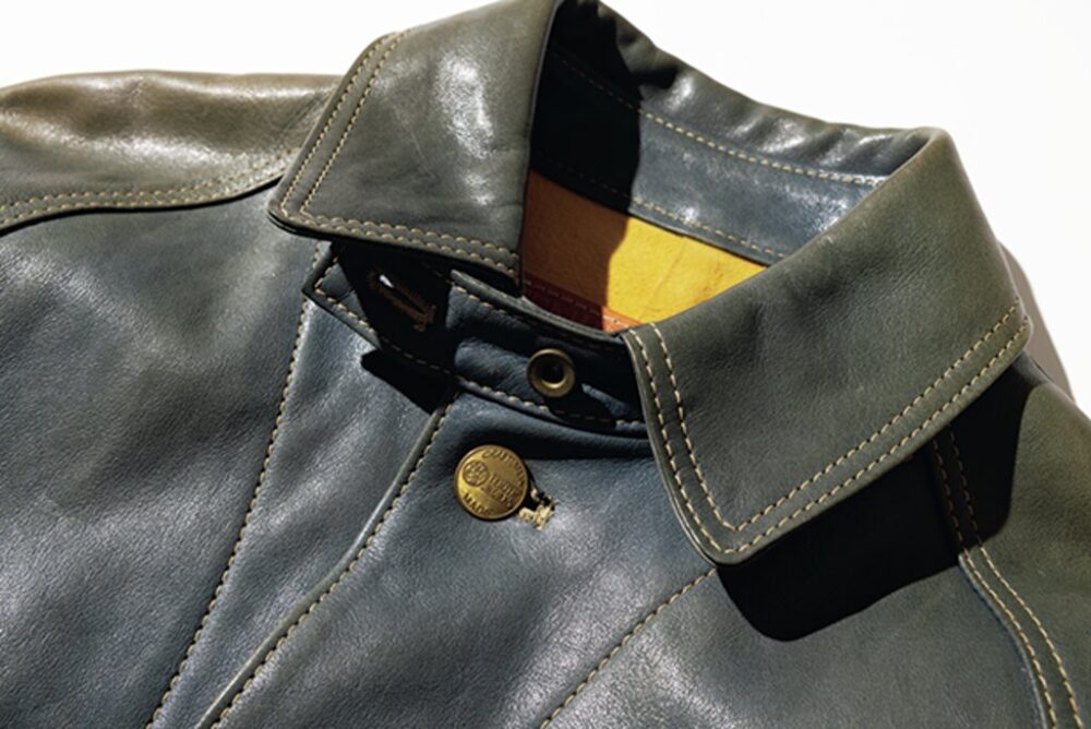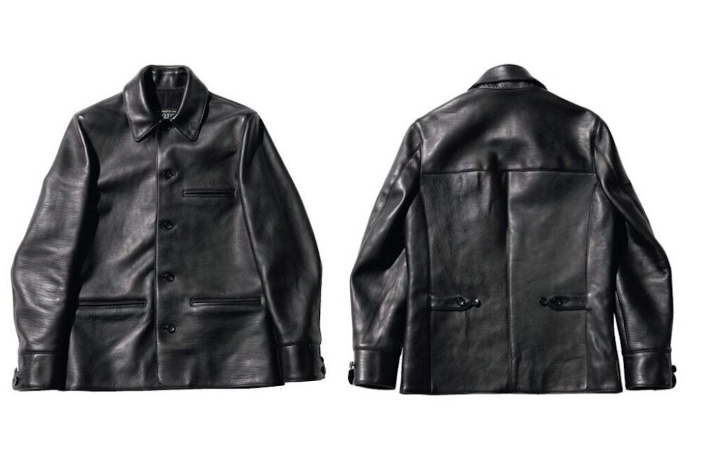 オリジナルレシピで鞣した茶芯のホースハイドを使用したカーコートタイプのレザージャケット。革は1.5㎜と肉厚で、フロントボタンには本水牛のボタンを装備。袖にはいせ込みを入れ、肩周りの美しさと可動域を広げ、スーツのようにややフォーマルなシルエットを感じさせる美しい仕上がりとなっている。27万5000円(KLOOTCH TEL03-6427-2555 https://www.klootch.jp)