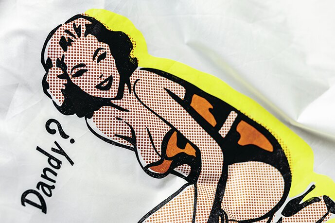 バックに描かれたピンナップガールは、グラッドハンドのL.さんが担当。旧きよき時代のアメリカンカルチャーを感じさせるウルフマンの世界観とマッチしている。
