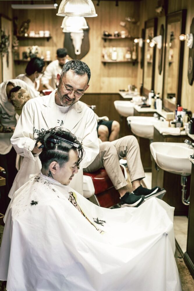 今や全国各地に旧きよき時代のアメリカのバーバーを彷彿とさせる理髪店が数多くあるが、そのパイオニアがウルフマンバーバーだ。当店のスタッフが着用するユニフォームは、オーナーの曽原さんが考案したバーバー仕様のカバーオール。今年からスタートしたウルフマンバーバーサプライとウィアードのコラボとなる。そのきっかけは?
