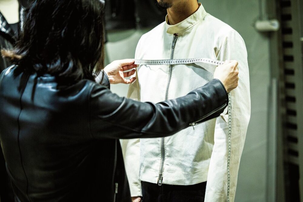 オーダーメニューは全5段階。まずは基本形の革、色だけを変える“カラービスポーク”。自分の身体に袖丈や着丈を合わせる“レングスビスポーク”。ディテールデザインを変更する“ディテールビスポーク”。専門のフィッターが身体を採寸して、型紙から起こす“ロイヤルビスポーク”。そして、全てを0からデザインする“アルチザン”。納期は型紙がないもので1.5 〜2カ月。型紙を作成するもので2.5〜3カ月程度で完成する。