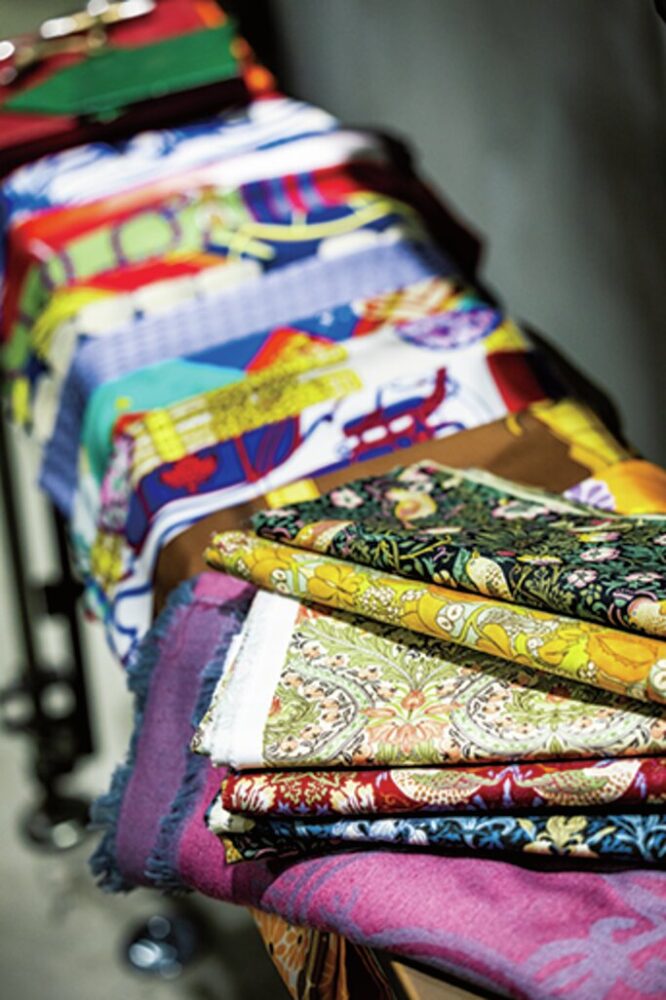 ライニングは基本素材に加え、ヴィンテージの一点モノの選択も可。タイミングは運だが、予想外の生地に出会えることも。写真上にあるフェルメールのライニングなんて他では選べない。