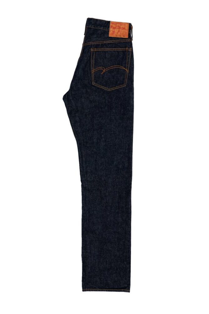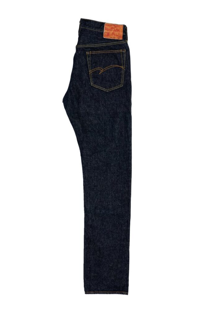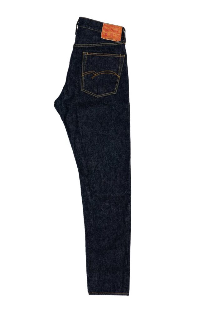 最もベーシックなオリジナルストレートモデル。旧シャトル織機で分厚く織り上げた15オンスの右綾デニム生地は、しっかりとした穿き心地と濃色に染められた色合いが特徴。時間を掛けて穿き込めば、ヒゲやアタリがはっきり現れる。Size_27〜34, 36, 38, 40、価格2万8380円(38, 40インチ3万800円)