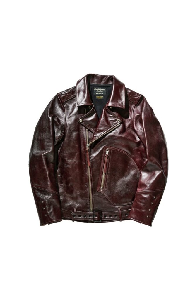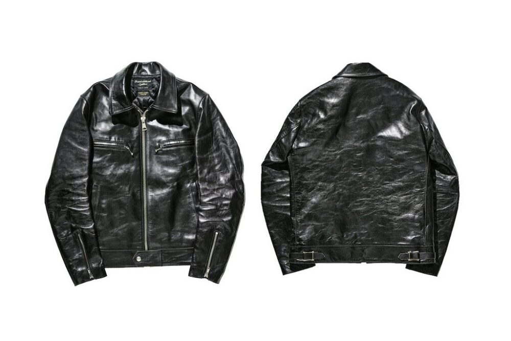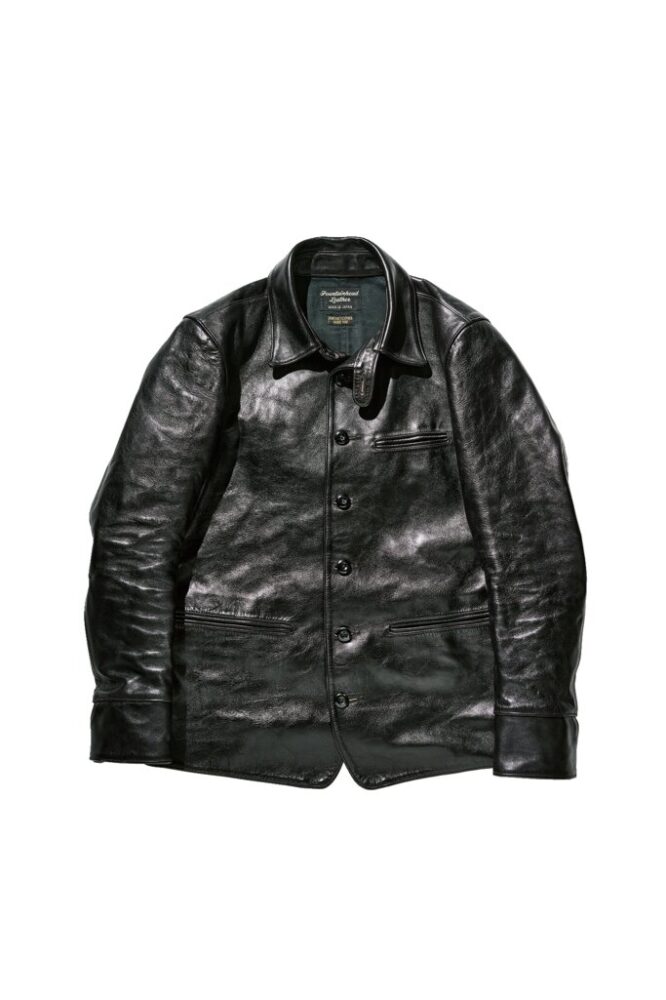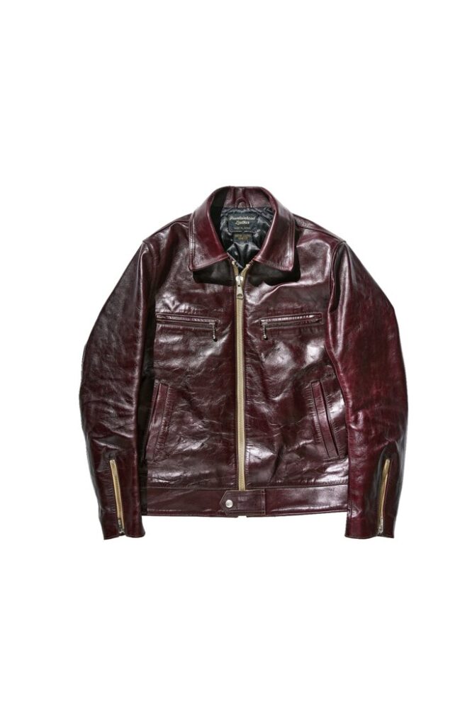 レザージャケットの歴史に名を残す1930年代の銘品を現代に甦らせた人気モデル。袖周りのスタッズや前立てに設けられたポケットなど、ヴィンテージファン垂涎のディテールも堪能できる。ファウンテンヘッドレザーの馬革は、ブラック/ブラウンともにサンドイッチ仕様の茶芯で、経年変化すると下地の茶が出現してくるのも嬉しいポイント。ブラウンカラーでも茶芯を楽しめる。24万790円