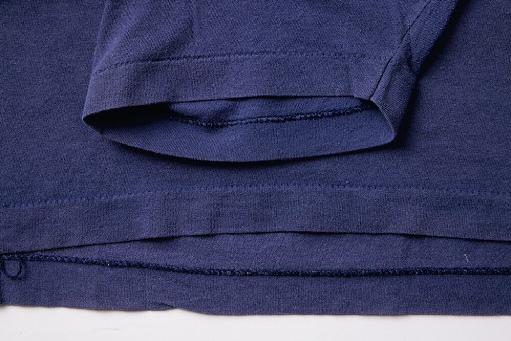 まず、見て欲しいのは袖と裾のステッチだ。基本的にステッチの種類は2種類となっており、縫い目が点々と1列に並んでいるシングルステッチの方が旧く、縫い目が2列となっているダブルステッチの方が新しい。シングルステッチは1990年代前半頃までに見られるディテールで、以降ダブルステッチに移行していくのだが、袖と裾が共にダブルステッチになる過程で袖シングルステッチ、裾がダブルステッチといった片方のみがシングルステッチとなっている個体も存在する。