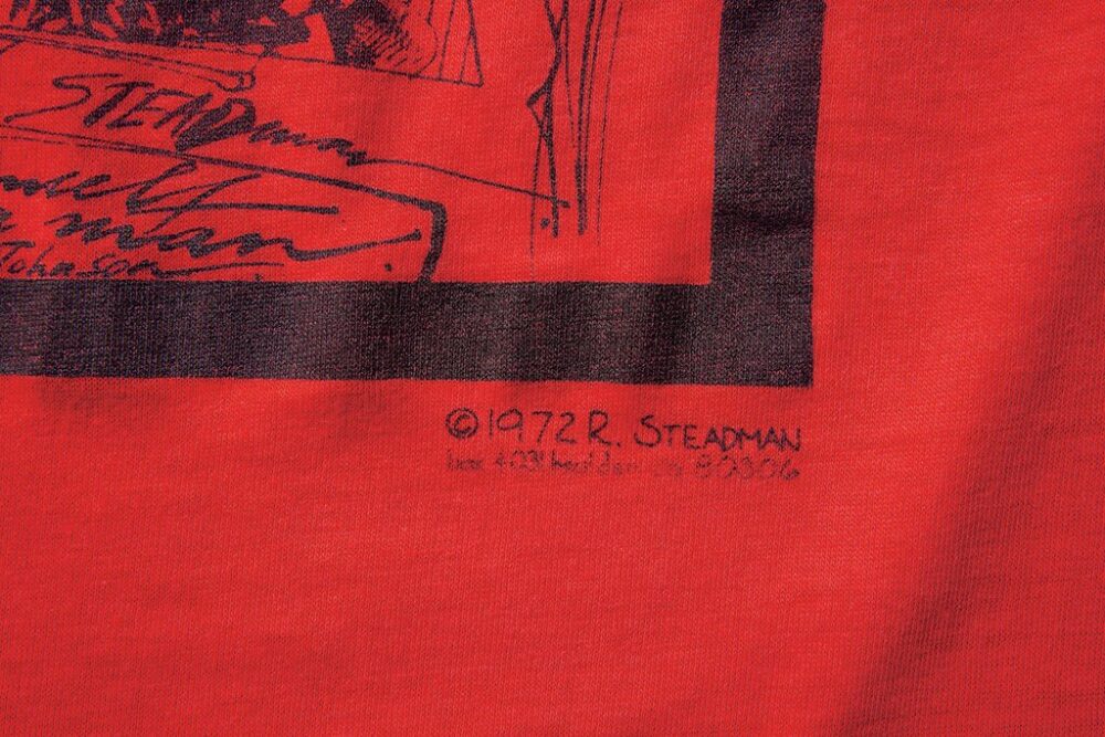 イラストがプリントされたTシャツの年代判別をする際にコピーライトを確認することはとても重要だ。写真上は’72年以降、写真下なら’89年以降に作られたものと判断が可能となっている。