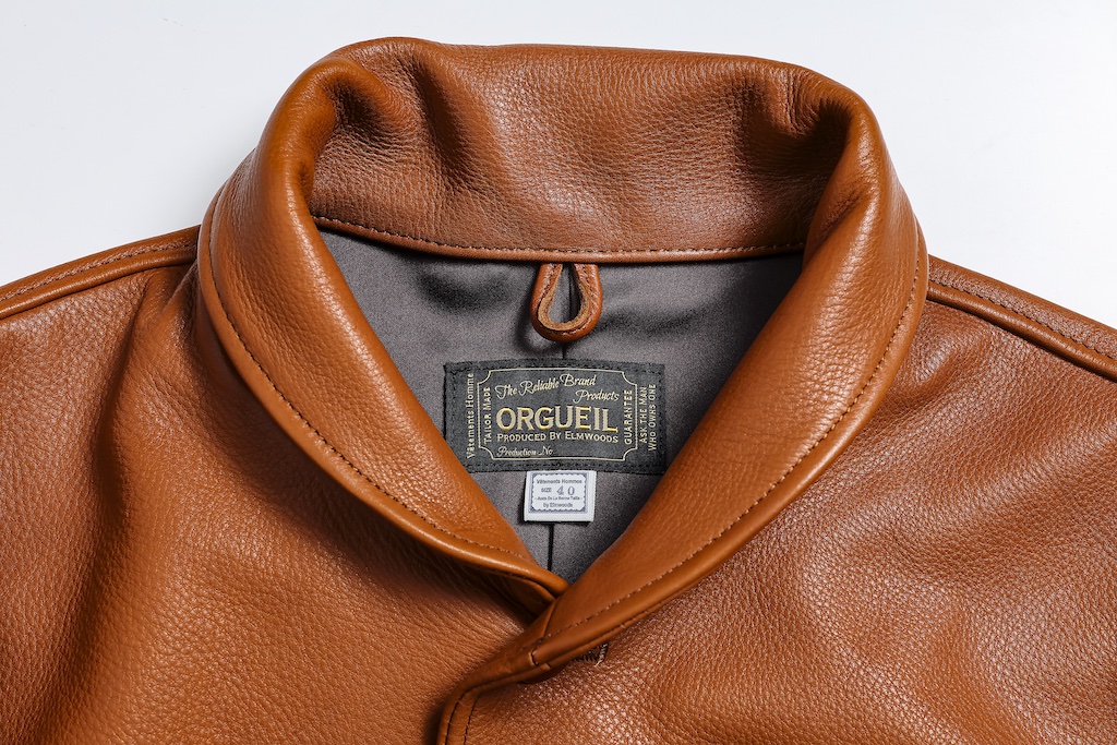 かつてアメリカ軍騎兵隊が着用していたと言われているコサックジャケットをイメージし、上質で柔らかなステアハイドレザーをマテリアルに仕立てた。ミリタリー起源のジャケットではあるが装飾が施されたナットボタンやショールカラー、そしてすっきりとしたシルエットが上品な印象を与えてくれる。14万800円(マリジュアン横浜元町店 TEL045-232-4610 https://www.orgueil.jp)